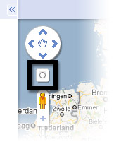 Aber darum geht es in diesem Fall ja eigentlich nicht. Wenden Sie also Ihre Aufmerksamkeit den Bedienelementen der Karte an deren linkem Rand zu: Hier finden Sie zwischen dem Kreis mit den Pfeilsymbolen ganz oben und der Skala für die Vergrößerung ein kleines unscheinbares Symbol mit einem Kreis darauf.