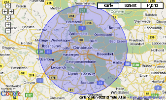Genauer wird es, wenn Ihr PC mit einem WLAN-Adapter ausgerüstet ist. In dem Fall wird mit dessen Hilfe nach Drahtlosnetzwerken in Ihrer Umgebung gesucht. Zu denen müssen Sie nicht mal Zugriff haben, es reicht, dass sie erkannt werden können. Jedes Netzwerk hat eine eindeutige ID und auch hier gibt es eine globale Datenbank, in der die Koordinaten von vielen Drahtlosnetzwerken verzeichnet sind. Wenn Sie sich im Empfangsbereich eines bestimmten Netzwerkes befinden, kann Ihre Position also weiter eingekreist werden. Das erlaubt Lokalisierungen mit wenigen hundert Metern Spielraum. Kann Ihr Drahtlosadapter gleich mehrere Netzwerke ermitteln, lässt sich die Position noch genauer bestimmen. Dann wird berechnet, wo sich die Einzugsbereiche der verschiedenen Funknetze überlappen, was abhängig von der Anzahl der Funknetze eine Positionierung ergibt, die bis auf wenige Meter genau sein kann. Diese Methode funktioniert gerade in Stadtzentren oftmals erstaunlich genau. Auf dem flachen Land, wo die WLANs dünner verteilt sind, hilft sie hingegen oft auch nicht weiter. - Einzugsbereich von Mobilfunkzellen: