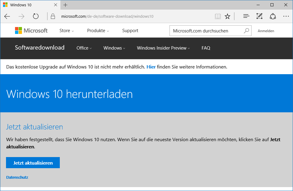 Öffnen Sie die Webseite www.microsoft.com/de-de/software-download/windows10.