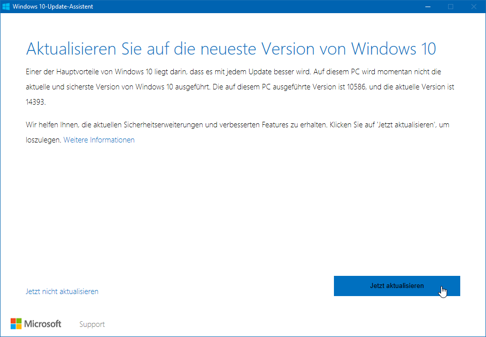 - Nun brauchen Sie nur noch auf Jetzt aktualisieren zu klicken, um das Update zu starten.