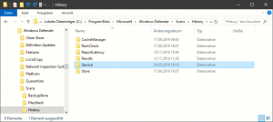 - Löschen Sie darin den Unterordner Service (er wird vom Windows Defender bei der nächsten Bedrohung automatisch neu erstellt).