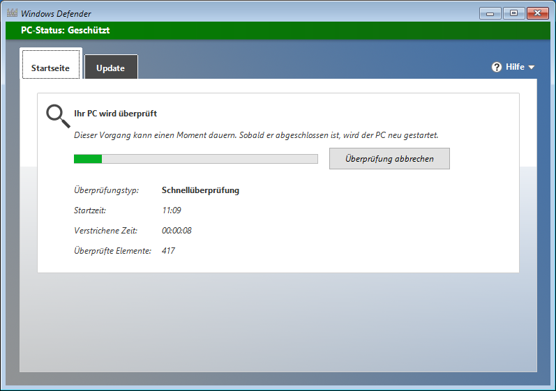 Sie automatisch abgemeldet. Eventuell geöffnete Dokumente sollten Sie deshalb zuvor gespeichert und geschlossen haben. - Anschließend wird Windows in einem speziellen Modus neu gestartet, in dem nur der Windows Defender ausgeführt wird.