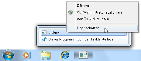 Windows 7: Beliebige Ordner als Symbol in der Taskleiste