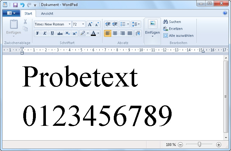 - das in Windows integrierte Textverarbeitungsprogramm WordPad (mit einem Beispieltext in Times New Roman und Schriftgröße 72)