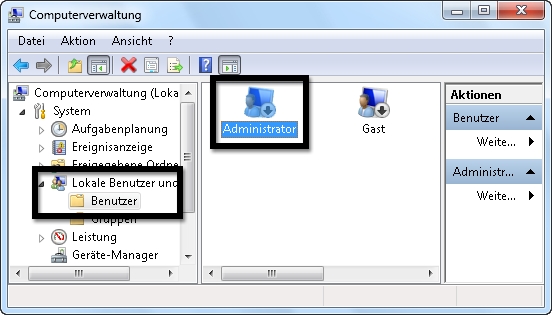 2. Systemadministrator 2/5Öffnen Sie dort in der Navigationsspalte links die Kategorie Computerverwaltung/ System/ Lokale Benutzer und Gruppen/ Benutzer.