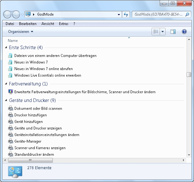 Auf die Gefahr hin, Sie zu enttäuschen, hier erstmal der streng geheime Weg zum Windows 7-Gott-Modus: