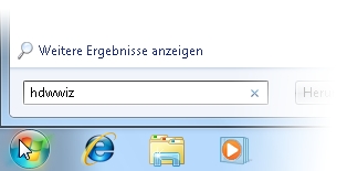 Öffnen Sie das Startmenü mit [Windows] und tippen Sie im Eingabefeld hdwwiz ein.