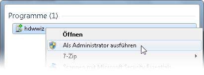 Klicken Sie mit der rechten Maustaste darauf und wählen Sie im Kontextmenü den Punkt Als Administrator ausführen.