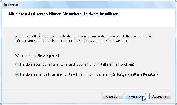 - Damit starten Sie den klassischen Windows-Hardware-Assistenten.