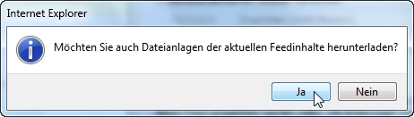 Bestätigen Sie direkt im Anschluss die Frage nach dem Herunterladen der aktuellen Feedinhalte mit Ja.