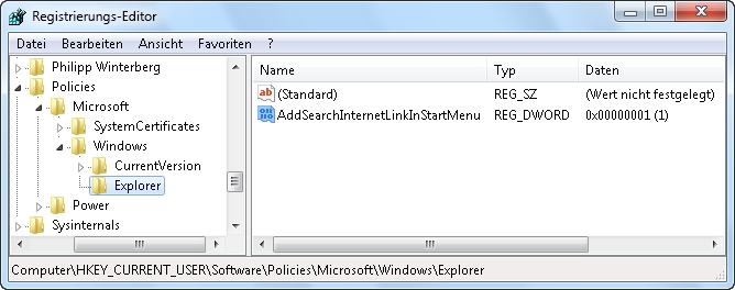 Windows 7: Websuchen direkt aus dem Startmenü reaktivieren
