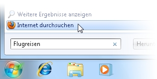 Das neue Startmenü wurde in seiner prinzipiellen Form schon mit Vista eingeführt. Dort bot es allerdings noch eine zusätzliche Funktion, nämlich das Suchen im Internet direkt aus dem Eingabefeld des Startmenüs. Da hierzu nicht erst der Webbrowser gestartet werden muss, ist dies meist die schnellste Möglichkeit, eine Suche zu starten. Bei Windows 7 wurde diese Funktion – warum auch immer – wieder entfernt. Allerdings lässt sie zurückholen – je nach Edition mit einer von zwei Methoden: