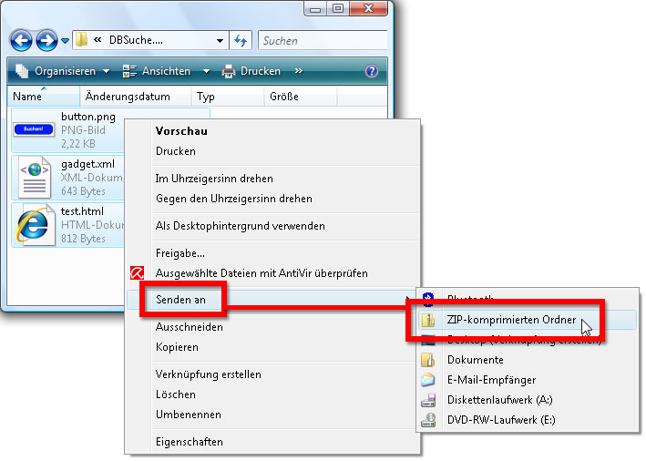 - Wählen Sie im Kontextmenü den Befehl Senden An/ZIP-komprimierten Ordner.