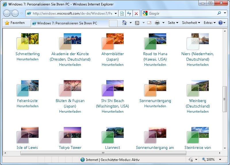 Windows 7 bringt als erstes Windows lokalisierte Designs mit. Bei einem deutschsprachigen Windows werden also andere Themen und Bilder eingerichtet als etwa bei einem amerikanischen Anwender. Allerdings unterscheiden sich die Installationsmedien nicht und es entscheidet nur die Sprach- und Regionsauswahl bei der Installation, welche Designs später verfügbar sind. Die Designs für die anderen Regionen sind trotzdem dabei und lassen sich einfach freischalten. So können Sie die Auswahl an Designs auf einfache Weise deutlich erweitern.