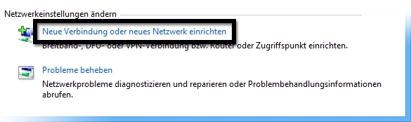 Wechseln Sie zum Desktop und öffnen Sie hier über das Symbol im Infobereich das Netzwerk- und Freigabecenter. Alternativ und etwas fingerfreundlicher erreichen Sie es über die Systemsteuerung.- Klicken Sie dort im Bereich Netzwerkeinstellungen ändern auf Neue Verbindung oder neues Netzwerk einrichten.