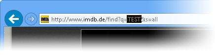 Öffnen Sie den gewünschten Suchdienst im Internet Explorer und geben Sie den Suchbegriff TEST (in Großbuchstaben) ein.- Warten Sie auf die Antwort, markieren Sie dann den gesamten Inhalt des Adressfelds und kopieren Sie ihn mit [Strg ] + [C].