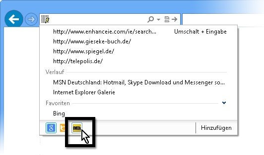 Das Adress- und Suchfeld des Internet Explorer lässt sich um zusätzliche Suchdienste erweitern. Dabei sind sie nicht auf die vorgefertigten Suchanbieter beschränkt, sondern können Suchfunktionen von beliebigen Websites, Foren und Blogs direkt in das IE-Adressfeld integrieren.