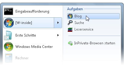 • ie9_0508Auch bei Websites im Startmenü können Sie solche Zusatzfunktionen nutzen. Hier gibt es zwar keine Sprungliste. Aber wenn spezielle Aktionen für eine angeheftete Website vorhanden sind, finden Sie zu diesem Eintrag ein Untermenü, wo Sie diese Aufgaben abrufen können.