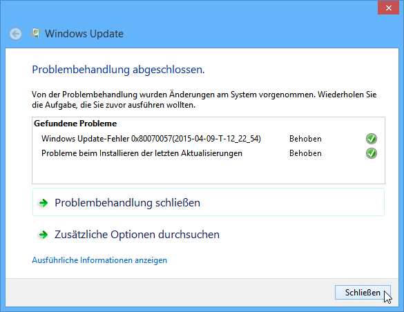Auch im Anschluss an diese Maßnahme sollten Sie Windows neustarten, das Update erneut ausprobieren und die Finger kreuzen, dass es nun klappt.